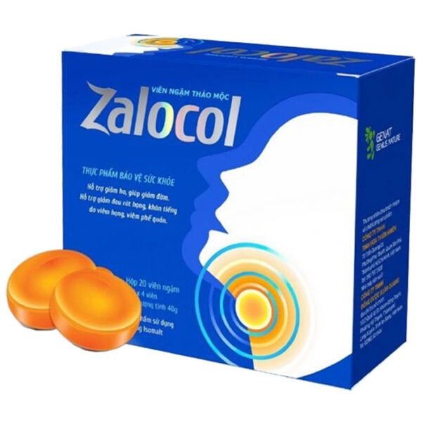 Viên ngậm thảo mộc Zalocol (Hộp 20 viên) Hỗ trợ giảm ho, giảm đờm, đau họng, rát họng, khản tiếng do viêm họng